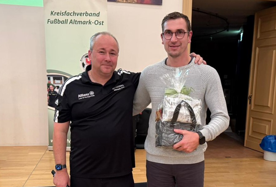 Ein Höhepunkt des Abends war die Ehrung von Marcel Baron vom SV Grieben. Er ist seit 25 Jahren als Schiedsrichter aktiv und wurde für sein herausragendes Engagement sowie seine langjährigen Verdienste um das Schiedsrichterwesen mit einem Präsentkorb ausgezeichnet. Die Würdigung wurde von allen Anwesenden mit großem Applaus begleitet.