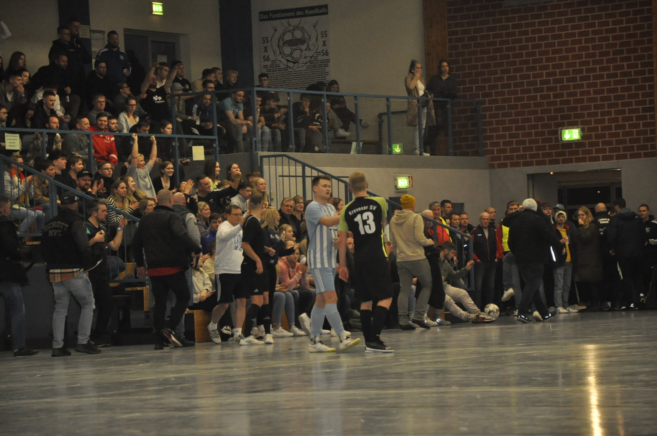 In Gruppe B ging es sehr schleppend los, sowohl die Partie zwischen Gastgeber Seehausen und Berkau II als auch der Vergleich zwischen Osterburg II und Krevese zwei endeten torlos. Doch schon im Anschluss zeigte sich zumindest die OFC-Zweite deutlich treffsicherer – zum Unmut der zahlreichen Heimfans wurde Seehausen mit 5:0 von der Platte gefegt. Den nächsten Vorteil erarbeitete sich im Reserven-Duell Krevese durch ein 2:1 über Berkau. Da Osterburg eben jene Berkauer im letzten und entscheidenden Spiel 2:0 besiegte, war der OFC II durch und die KSG II raus. Spannend, ja spektakulär sollte dann die Entscheidung über den zweiten Ausscheidungsspiel-Teilnehmer zwischen Seehausen und Krevese II fallen. Die zuvor arg gerupften Kickers legten los wie die Feuerwehr und führten schnell 2:0. Nur ein weiteres Tor fehlte und die Hallenherren hätten den KSV II im direkten Duell noch von Platz zwei verdrängen können. Dieses Tor fiel aber zunächst auf der anderen Seite – 1:2. Angepeitscht vom lautstarken Anhang und auch bedingt durch eine Kreveser Unterzahl erhöhte Seehausen auf 3:1. Wieder fehlte nur ein Törchen… Kurz vor Schluss dann die Entscheidung, als Krevese wieder in voller Stärke der erneute Anschluss gelang.