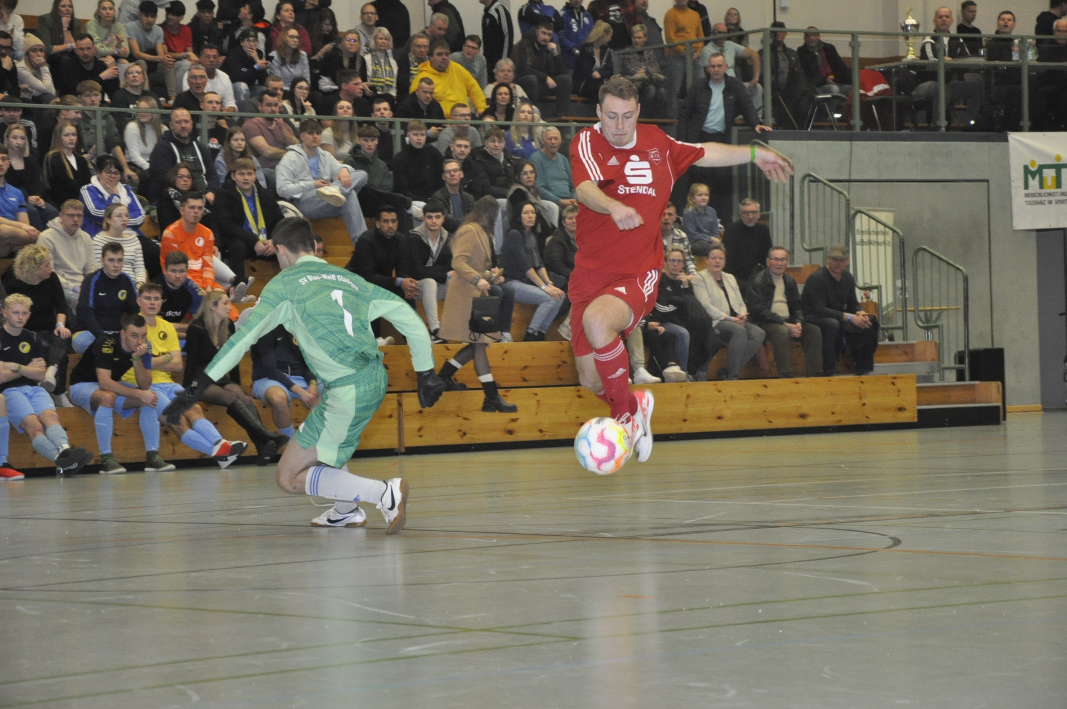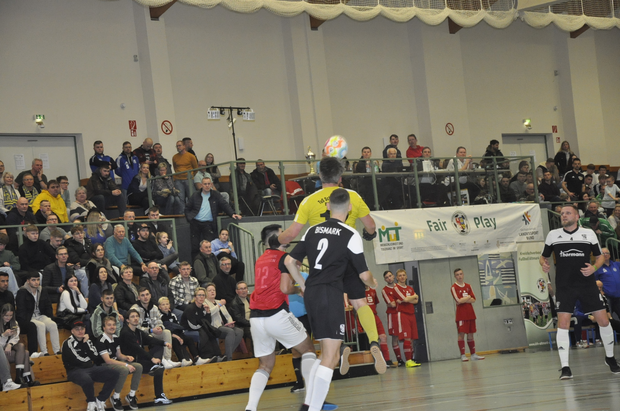 In Gruppe A qualifizierten sich derweil Germania Klietz und die SG Tangermünde/Schönhausen II. Zwar starteten die Germanen trotz des ersten Turniertreffers durch Patrick Blümner nach bereits 60 Sekunden „nur“ mit einem 1:1 gegen Bismarks Reserve, machten aber im Anschluss gegen Tangermünde/Schönhausen II (2:0) und Klein Schwechten (3:0) den Gruppensieg perfekt. Rang zwei sicherte sich mit Tangermünde/Schönhausen der Underdog. Der einzige Kreisklasse-Vertreter setzte sich nach dem Auftaktsieg gegen Klein Schwechten (3:0) im entscheidenden letzten Gruppenspiel gegen Bismark II knapp mit 1:0 durch. Die Schwarz-Weißen hatten zuvor eine bessere Ausgangslage in einem kuriosen Spiel gegen Klein Schwechten liegen lassen, als sie schon verdient mit 2:0 führten. Zunächst bekam Heide’s Pascal Köppe die Murmel so an den Kopf, dass der Ball sich von dort über Keeper Niklas Kannenberg ins T0r senkte. Apropos Kannenberg, nur wenig später rutschte dem Keeper ganz zur Freude der unzähligen mitgereisten Heide-Fans der Ball unter dem Schlappen durch.