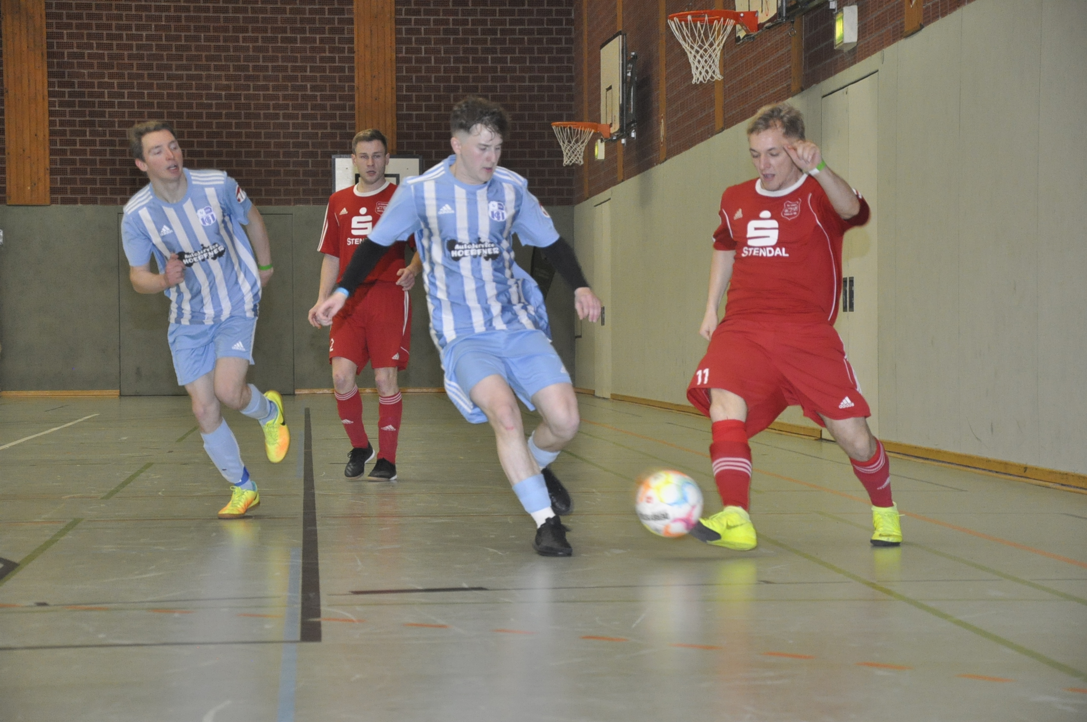 Im ersten Halbfinale standen sich somit Germania Klietz und Eintracht Lüderitz gegenüber. Wie schon zum Turnierauftakt sollte Frühstarter Blümner, der nach gerade einmal 15 Sekunden zur Führung traf, den Reigen eröffnen. Als Richardt Klipp keine Zeigerumdrehung später auf 2:0 und drei Minuten vor Schluss mitten in der Lüderitzer Drangphase seinen Doppelpack schnürte und auf 3:0 erhöhte, war der Kater gekämmt – denkste! Moritz Hartleben machtes es zwei Minuten vor Ultimo mit einem schnellen Doppelpack wieder spannend und als Florian Brückner in der Schlussminute zum 3:3 einnetzte, war Lüderitz zurück und es ging ins Neuenmeterschießen. Dort leistete sich Florian Kleinat den entscheidenden Fehlschuss und zwar gleich doppelt. Nachdem sein erste Versuch gehalten wurde, entschied das Schiedsrichterkollektiv auf Wiederholgung, doch abermals behielt Tuchen die im Eintracht-Tor die Oberhand und sorgte für das Finale.