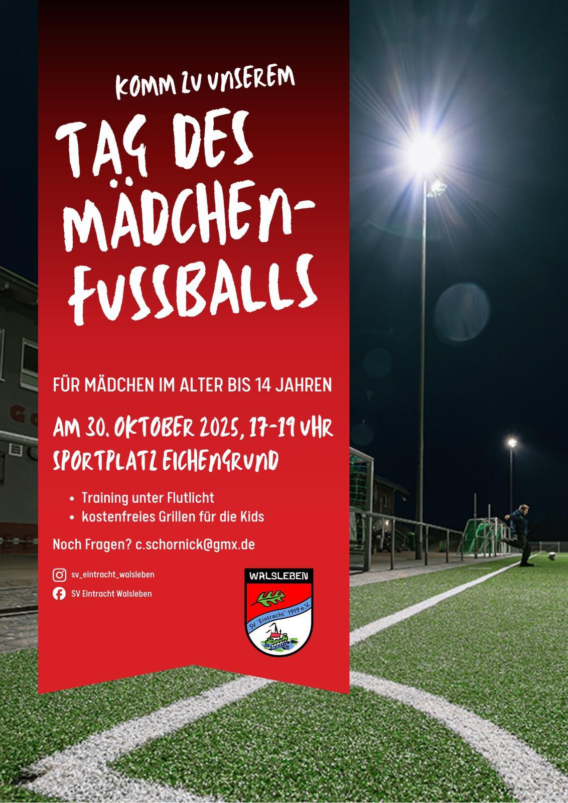 Der SV Eintracht Walsleben und der KFV würden sich freuen, viele Mädchen und junge Frauen am 30.10.2025 begrüßen zu können.